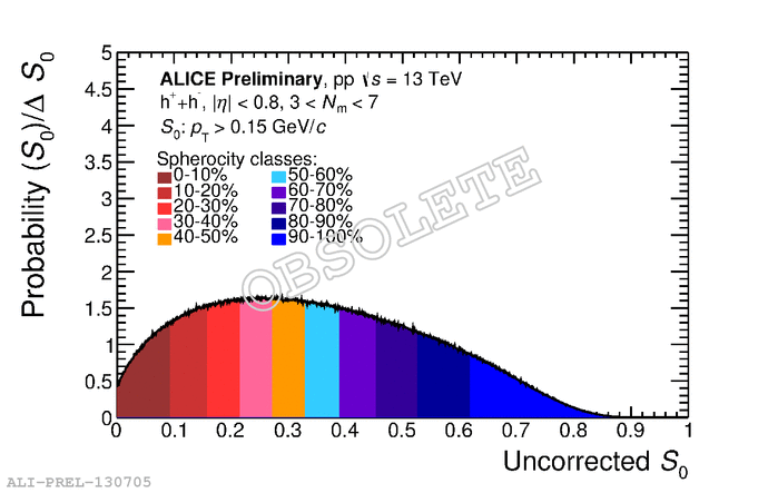 Uncorrected spherocity for measured multiplicity from 4-7.