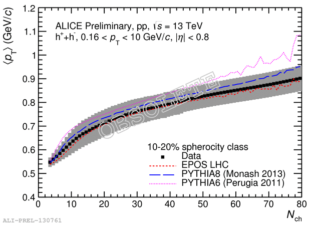 Mean transverse momentum for spherocity percentile 10-20%.