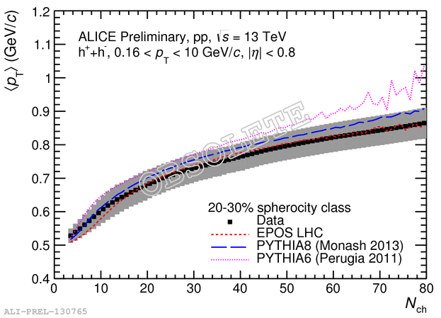 Mean transverse momentum for spherocity percentile 20-30%.