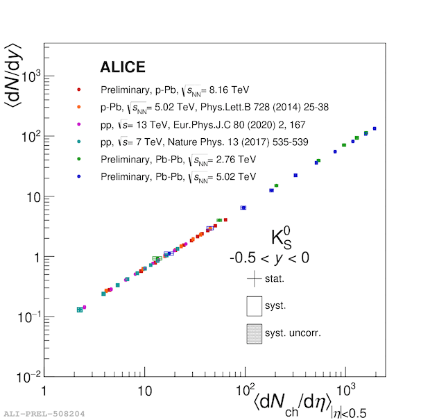 Average transverse momentum as a function of multiplicity for K0s and its comparison with other systems.