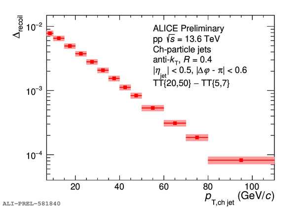 Delta recoil (background subtracted recoil jet yield) as a function of pT for R=0.4 jets
