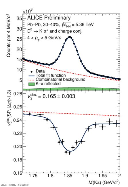 Simultaneous fit of the invariant-mass distribution and $\it{v}_{\rm 2}$ versus invariant mass of $\rm {D^0}$ candidates in the 4 < $p_{\rm T}$ < 5 GeV/$\it{c}$ interval and 30-40% centrality class.