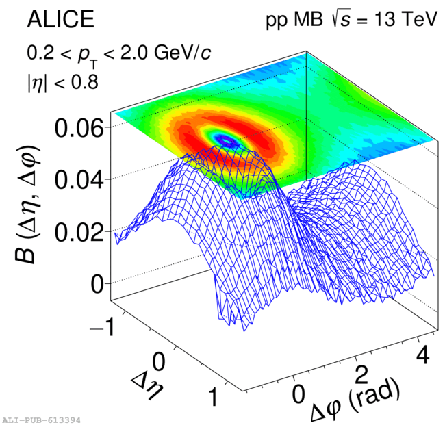 Balance function (left panel) of charged hadrons, in the selected $\pt$ range, obtained using ALICE data in pp collisions at $\s$ = 13 TeV. Integral of $B$ (right panel) results for charged hadrons in pp collisions at $\s$ = 13 TeV compared with the $B$ integral of identified hadron ($\pi \pi$, $\pi$K, and $\pi$p) pairs in Pb--Pb collisions at $\snn$ = 2.76 TeV~. Vertical bars and boxes represent statistical and systematic uncertainties, respectively.