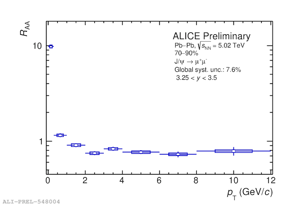 The J/psi nuclear modification factor as a function of pT in the centrality range (70-90)% in Pb-Pb collisions at 5.02 TeV for 3.25 < y < 3.5.