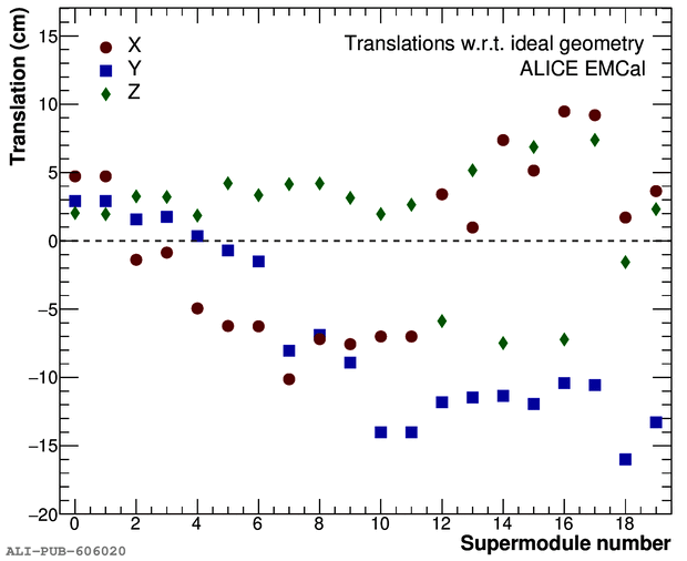 Left: Angular rotation of each \gls{SM} with respect to the ideal geometry. Right: Translation of each \gls{SM} with respect to the ideal geometry.